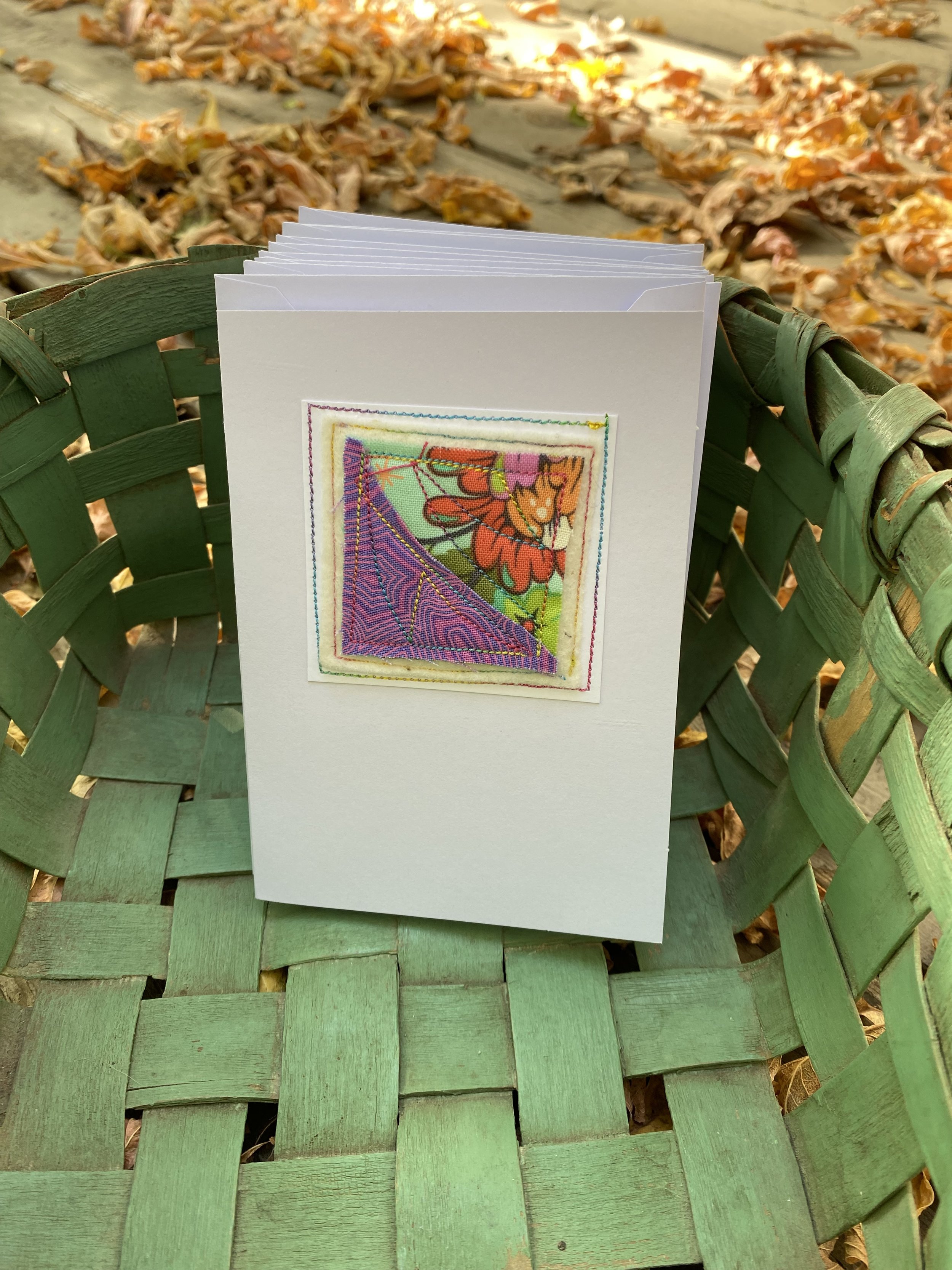 Using fabric, ephemera, paper, machine stitching and bits of batting, I make one-of-a-kind cards. No two are alike—as unique as a fingerprint.
